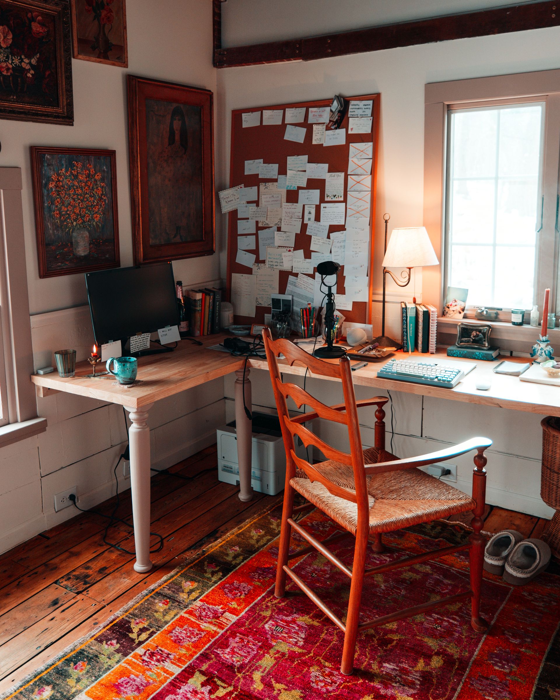the view of Olivia Muenter’s L-shaped writing desk from this week